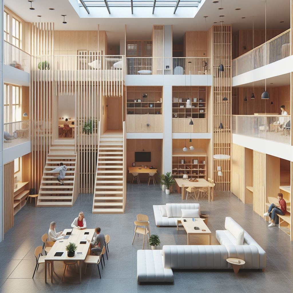 Tento obrázek se až strašidelně moc podobá mé prvotní skice společného prostoru, někdy sice AI zapomíná na zábradlí a myslí si, že můžete z postele rovnou skočit dolů na snídani, ale stejně jsem nadšená z toho, že když svůj nápad dostatečně popíšu, můžu si rychle vygenerovat obrázky, jak by to asi vypadalo a nemusím tak čerpat pouze z toho, co už někdo jiný navrhl.
